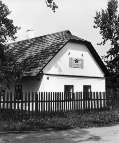 Veverka, praprapravnuk Františka Veverky, před rodným domem svého slavného
